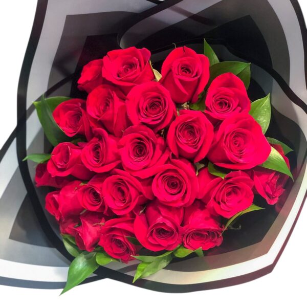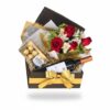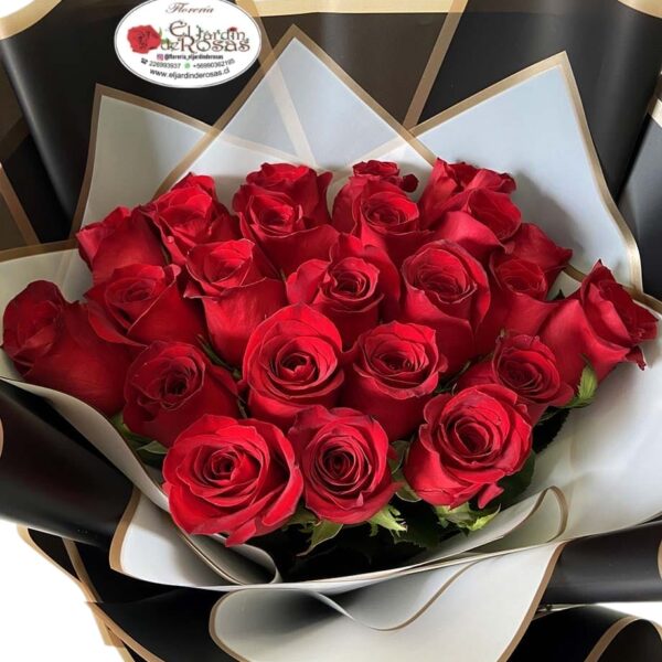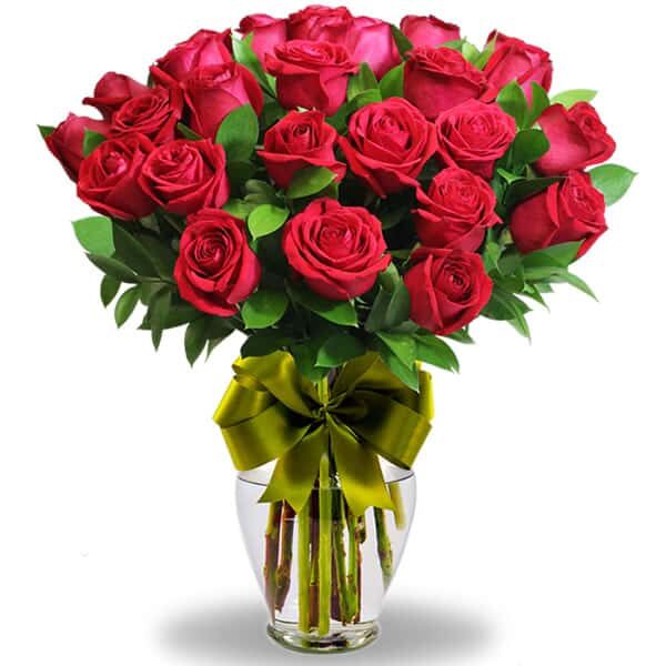 Florero con 25 rosas rojas bombones Varsovienne y globo te amo