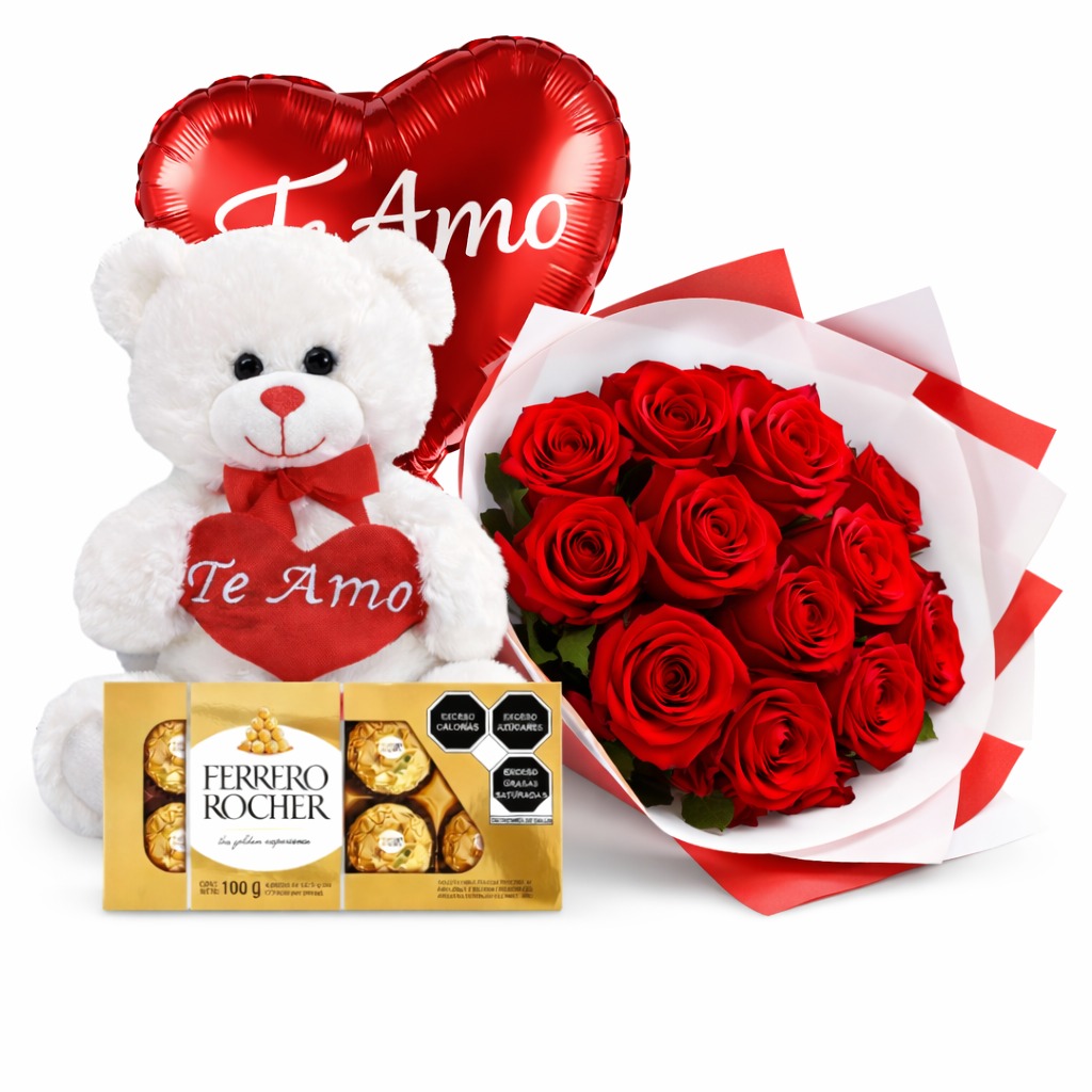 Este 14 de febrero , Piensa en la sonrisa en el rostro de tu ser amado al recibir este increíble ramo de rosas rojas, peluche y bombones es un deleite de emociones ¡No esperes más y haz tu pedido ahora mismo! Te garantizamos que este dejará huella en el corazon de la persona que reciba.