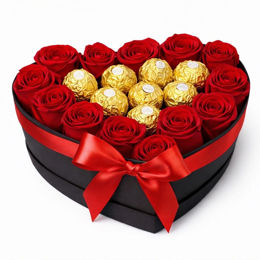 Acompañadas de selectos bombones Ferrero Rocher, cuya crujiente avellana y chocolate sedoso derriten el alma como un beso inesperado. Incluye linda tarjeta para expresar todo tu amor