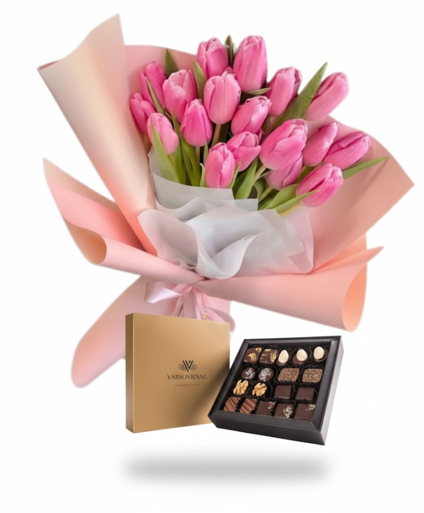 Ramo con 20 tulipanes surtidos y bombones Varsovienne