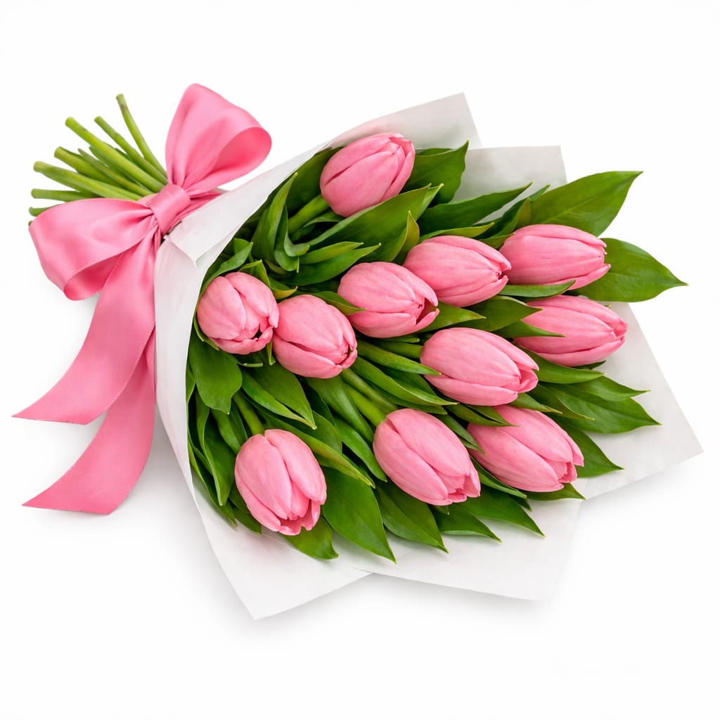Delicados tulipanes rosados, como pétalos de un amanecer tierno, se reúnen en un abrazo elegante de 10 tallos vibrantes. Cada flor susurra gratitud y cariño eterno, simbolizando el amor incondicional de una madre. Envuelto finamente por un papel sutil amarrado por una cinta de seda con toques de follaje rusco , este ramo es un tributo refinado para el 10 de mayo: un regalo que florece con recuerdos y emociona el corazón. ¡Celebra a la mujer que te dio la vida!