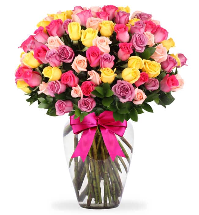 - Maravilloso florero con 100 bellas rosas ecuatorianas surtidas
