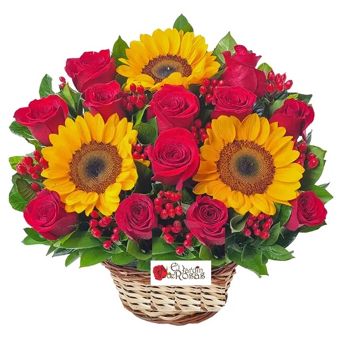 Maravillosa Canasta con 30 Rosas y 20 Girasoles Importados Cod.CGR-55