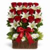 Canasta con 12 rosas rojas ,Astromelias blancas Codigo-CRA12