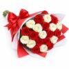 Cesta con 15 rosas rojas y 15 varas tulipanes blancos a domicilio