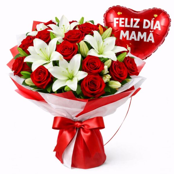 Ramo 12 rosas rojas y 6 varas de lilium blancos código:RL-18