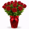 Florero 12 Rosas Ecuatorianas y 5 Varitas de Liliums Oriental