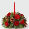 Centro de mesa con rosas rojas hypericum accesorios navideños y incluye una vela roja ideal para cenas familiares, fiestas navideñas o reuniones con amigos. Su atractivo visual y su simbolismo lo convierten en una pieza central perfecta para cualquier celebración durante la temporada navideña.